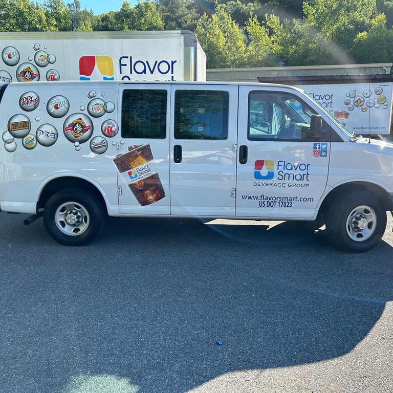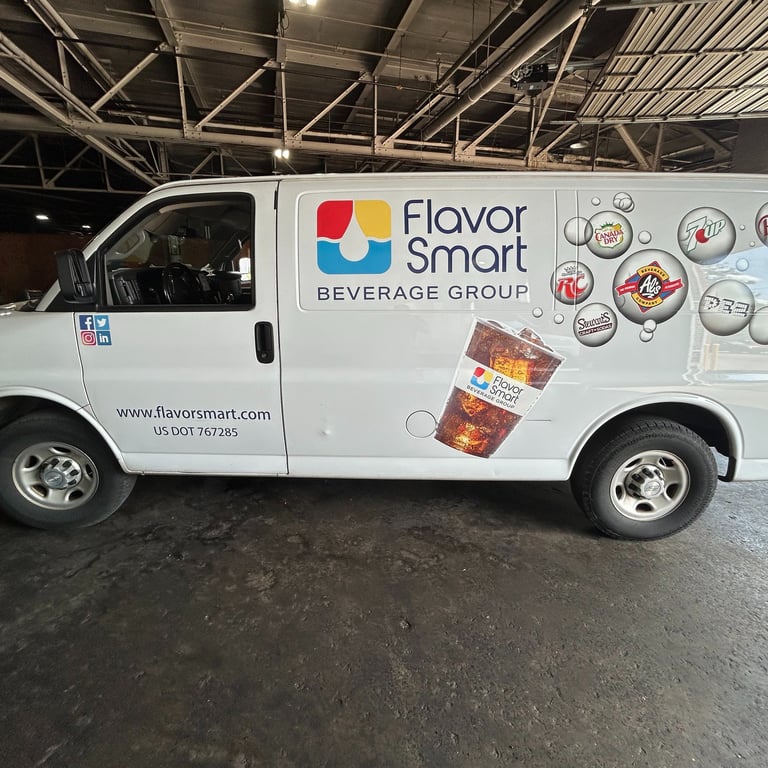 We provide design and on-site installation of graphics for vehicles and storefronts.